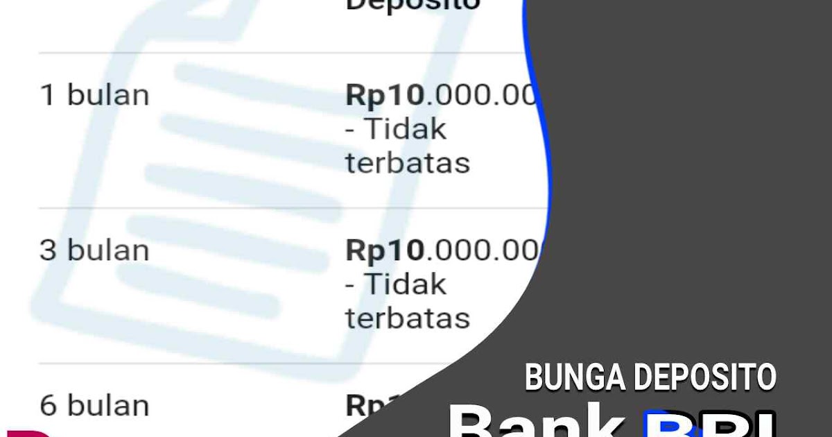 Berikut ini adalah beberapa keunggulan dari produk Deposito BRI Rupiah. Misalkan bunga deposito untuk tenor 12 bulan adalah 75 maka bunga deposito yang jumlah dana simpanannya lebih dari Rp75 juta secara riil harus dikurangi dengan 20 dari 75 yaitu sebesar 15. Guna menjadi bahan pertimbangan Anda berikut keuntungan dan fitur menarik yang ditawarkan oleh Deposito BRI.