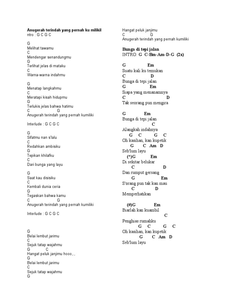 Bunga di tepi jalan Em Am Alangkah indahnya G C Bm C Ho. Last edit on Oct 06 2014. G Em Di sekitar belukar C D.