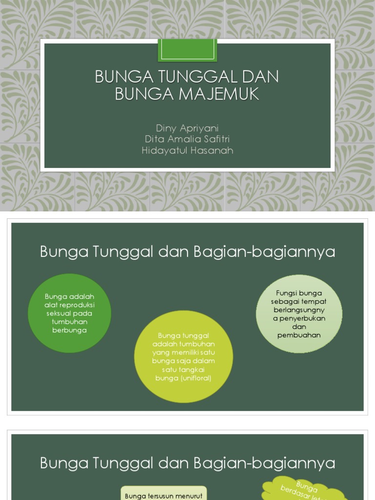 Istilah yang sering digunakan adalah bunga berbunga. Mengenal bagian-bagian bunga tunggal dan bunga majemuk 2. Dasar bunga Terhentinya pertumbuhan batang menyebabkan ruas menjadi pendek Daun-daun sepala petala stamen karpela sepala petala bersifat seperti daun tetapi warnabentuk berubah.