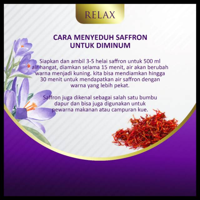 Jan 31 2020 Cara mudah minum saffron diminumnya bebas sesuka hati bisa kapan saja ya. Siapkan air putih segar dalam 1 cangkir ukuran sedang. Umumnya bunga dipergunakan untuk mempercantik ruangan.