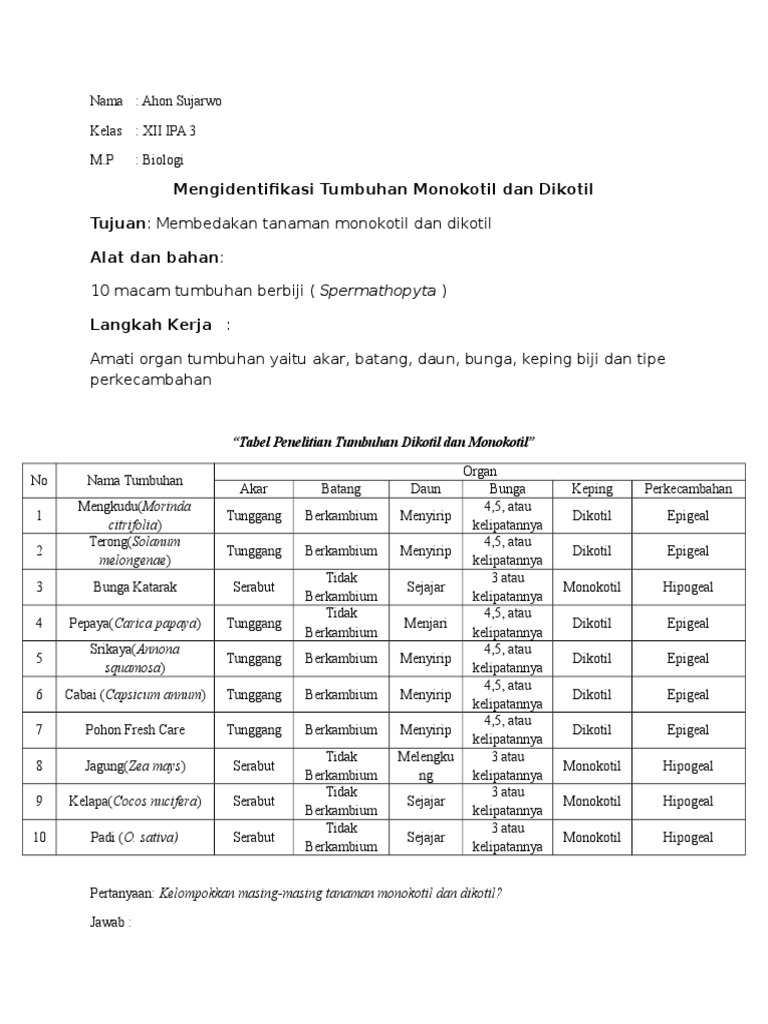 Memiliki akar batang daun tetapi bukan akar batang daun sejati. Tumbuhan berkeping biji tunggal atau monokotil adalah salah satu dari dua kelompok besar tumbuhan berbunga yang bijinya tidak membelah karena hanya memiliki satu daun lembaga. Mengenal Bagian Tumbuhan dan Fungsinya.