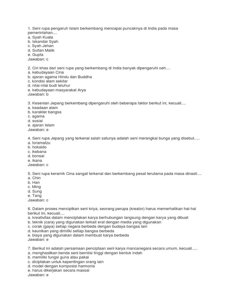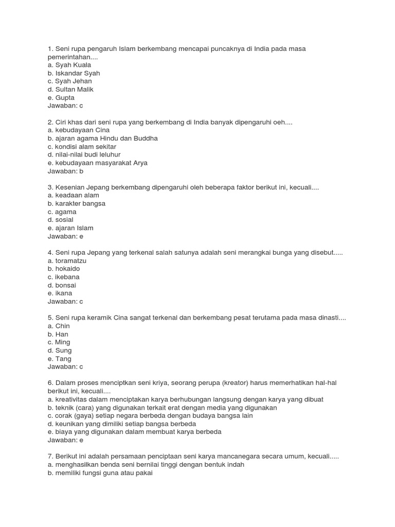 Seni rupa keramik Cina sangat terkenal dan berkembang pesat terutama pada masa dinasti. Patung berkepala manusia dan berbadan singa yang terdapat di Mesir disebut. Seni rupa Jepang yang terkenal salah satunya adalah seni merangkai bunga yang disebut.