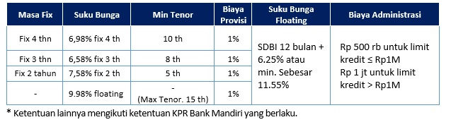 Suku Bunga Promo KPR Bank Mandiri Periode November 2020 sebesar mulai dari 388 fix 1 th 488 fix 3 888 fix 10 th dan suku bunga menarik lainnya untuk nasabah developer pilihan pembelian properti baru dari Developer Unggulan atau nasabah pilihan Bank Mandiri Daftar developer dapat menghubungi langsung cabang Bank Mandiri terdekat atau. Meski ada jenis suku bunga fix tetap atau cap kenaikannya gak melebihi beberapa persen yang ditentukan pada akhirnya bunga itu bakal jadi float mengambang mengikuti suku bunga dasar kredit SBDK di tahun tertentu. Dalam kredit konsumsi non-KPR tidak termasuk penyaluran dana melalui kartu kredit dan Kredit Tanpa Agunan KTA.